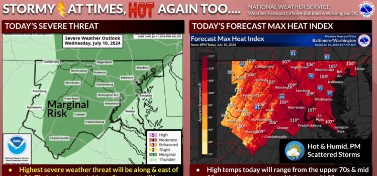 CALIFORNIA, Md. – The National Weather Service has issued an Excessive Heat Warning for July 10, 2024, in effect until 8 p.m. this evening for Washington D.C., Baltimore, southern Maryland, and parts of northern Virginia. Heat index values are expected...