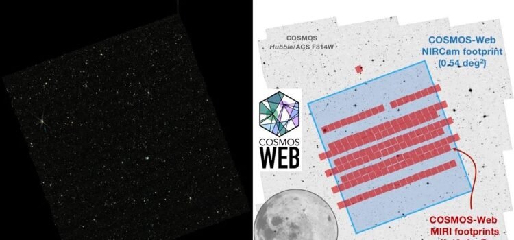 Press enter or click to view image in full sizeThe COSMOS-Web survey, the largest cycle 1 General Observers JWST program, was proposed in 2021 (right) as a large-area survey overlapping with the COSMOS field acquired with Hubble. On the left,...