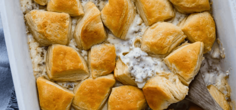 This website may contain affiliate links and advertising so that we can provide recipes to you. Read my disclosure policy. Forget the usual biscuits and gravy, this version takes everything you love and turns it into a hearty casserole. Creamy...