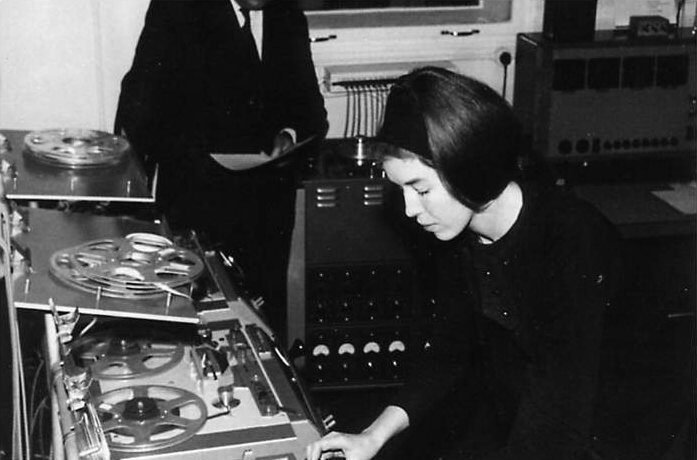 A number of years ago, in a post on the pioneering composer of the original Doctor Who theme, we wrote that “the early era of experimental electronic music belonged to Delia Derbyshire.” Derbyshire—who almost gave Paul McCartney a version of “Yesterday” with an electronic backing in place of strings—helped invent the early electronic music of the sixties through her work with the Radiophonic Workshop, the sound effects laboratory of the BBC. She went on to form one of the most influential, if largely obscure, electronic acts of the decade, White Noise. And yet, calling the early eras of electronic music hers is an exaggeration. Of course her many collaborators deserve mention, as well as musicians like Bruce Haack, Pierre Henry, Kraftwerk, Brian Eno, and so many others. But what gets almost completely left out of many histories of electronic music, as with so many other histories, is the prominent role so many women besides Derbyshire played in the development of the sounds we now hear around us all the time.