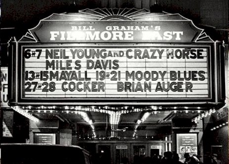 Miles, suggested jazz writer Greg Tate, was “bored fiddling with quantum mechanics and just wanted to play the blues again.” The story of Davis and Young at the Fillmore East is best told by listening to the music both were making at the time. Hear “Cinnamon Girl” below and the rest of Neil Young and Crazy Horse’s incredible set here. The band had just released their beautifully ragged Everybody Knows this is Nowhere.
