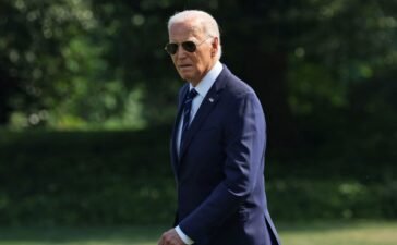U.S. President Joe Biden walks across the South Lawn to board Marine One for travel to Nevada from the White...