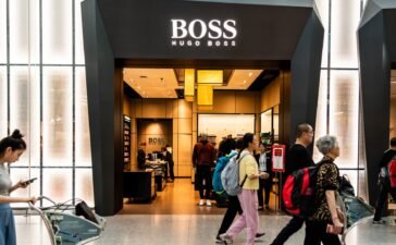 Pedestrians walk past a German luxury fashion house Hugo Boss store in Shenzhen Bao'an International Airport.Alex Tai | SOPA Images...