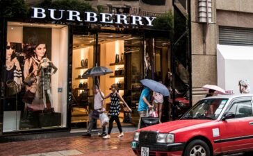 Pedestrians walk past a Burberry Group Plc store, left, in the Causeway Bay shopping district of Hong Kong.Xaume Olleros |...