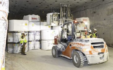 The group soon shuffles to follow the same path nuclear waste would. First, to the unloading area, where a container...