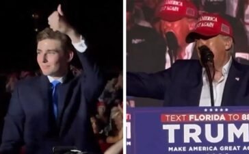 Play video content Brendan Gutenschwager via Storyful Barron Trump made a surprise appearance at his father's campaign rally in Florida...