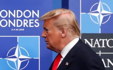 US President Donald Trump arrives for the NATO summit at the Grove hotel in Watford, northeast of London on December...