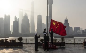 China customs officers raising a Chinese flag during a rehearsal for a flag-raising ceremony in Shanghai.Qilai Shen | Bloomberg |...