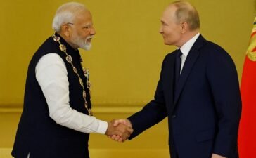Russia's President Vladimir Putin awards India's Prime Minister Narendra Modi with the Order of St. Andrew the Apostle the First-Called...