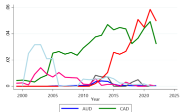 …although incomplete data for 2022. Figure 1: Geometric average of reserve holdings (expressed in USD) for reporting central banks. Very...