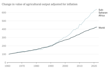If you look at total output, Peter Coy notes that sub-Saharan Africa looks quite impressive with gains in total output...