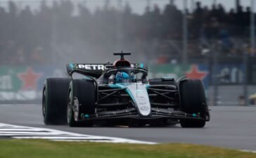 George Russell set the pace from Mercedes team-mate Lewis Hamilton in a wet final practice for the British Grand Prix.Heavy...