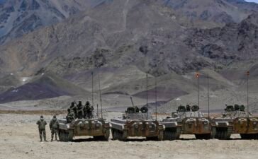 Armoured vehicles of the Indian army at a military camp in Eastern Ladakh on May 19, 2024. Tauseef Mustafa | Afp...