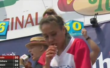 Play video content ESPN3 Joey Chestnut may not have competed in the annual Nathan's Famous Fourth of July Hot Dog...