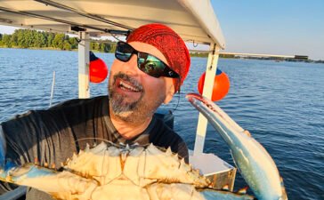 Rich Watts holds up what every crabber is looking for, a heavy jumbo blue crab. Photo by Rich Watts ANNAPOLIS,...