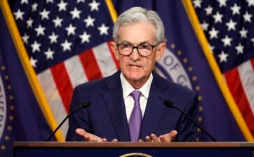 U.S. Federal Reserve Bank Chair Jerome Powell announces that interest rates will remain unchanged during a news conference at the...