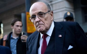 Former New York Mayor Rudy Giuliani departs the U.S. District Courthouse after he was ordered to pay $148 million in...