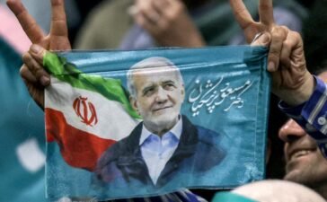 A citizen is seen in front of the candidates posters for the 14th presidential elections on the streets ahead of...