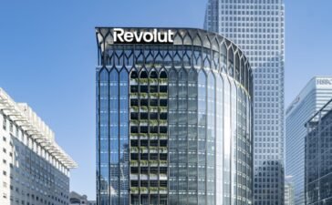 A mockup of what Revolut's new global HQ in Canary Wharf will look like. The firm said it plans to...