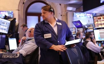 Traders work on the floor of the New York Stock Exchange during afternoon trading on June 03, 2024 in New...