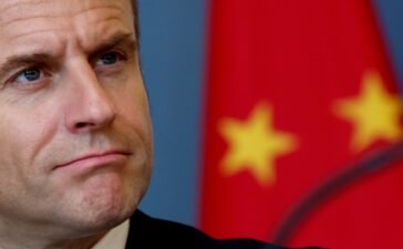 French President Emmanuel Macron attends a trilateral meeting with China's President Xi Jinping and European Commission President Ursula von der...
