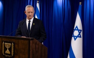Benny Gantz, a member of the country's wartime cabinet, departs after announcing his resignation during a press conference on June...