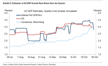 Never just look the headline number. The “why’s” matter. GDPNow down from 3.3% q/q AR to 2.8%, while GS tracking...