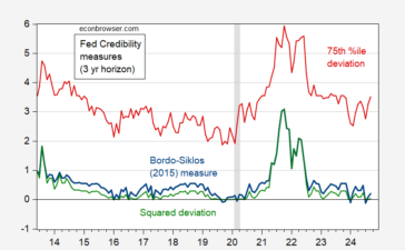 Has the Fed lost credibility, as some people have argued (e.g., EJ Antoni)? One way to assess credibility is to...