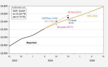 Only one forecaster projects two consecutive quarters of negative growth. Here’s the WSJ mean forecast compared to nowcasts: Figure 1:...